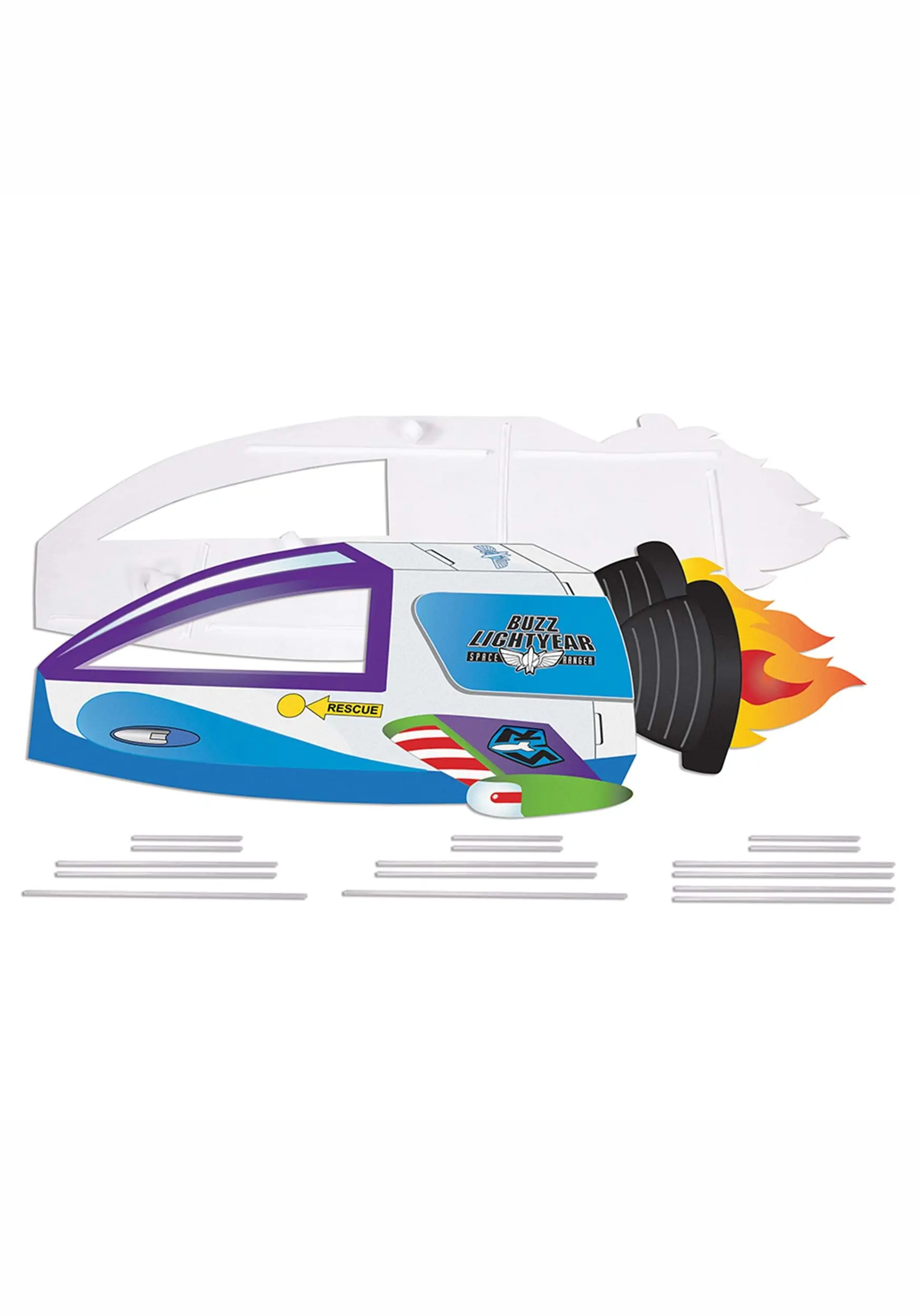 This is a Buzz Lightyear Spaceship Adaptive Wheelchair Cover Costume.