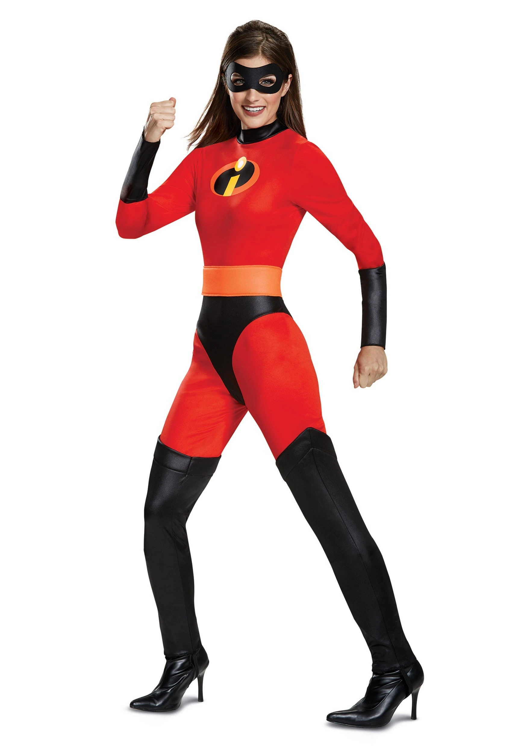 The best way to make sure that your heroic activities are successful is to gear up in some of Edna Mode’s most recent creations. This Incredibles 2 Classic Mrs. Incredible Women’s Costume is the sure-fire way to go from gal to Elastigirl. This comfy red and black Pixar costume is the perfect way to look fantastic as you get ready to kick butt. It features all the iconic designs of the matriarch of the Parr family, including the orange belt and the I insignia of the Incredible kin.