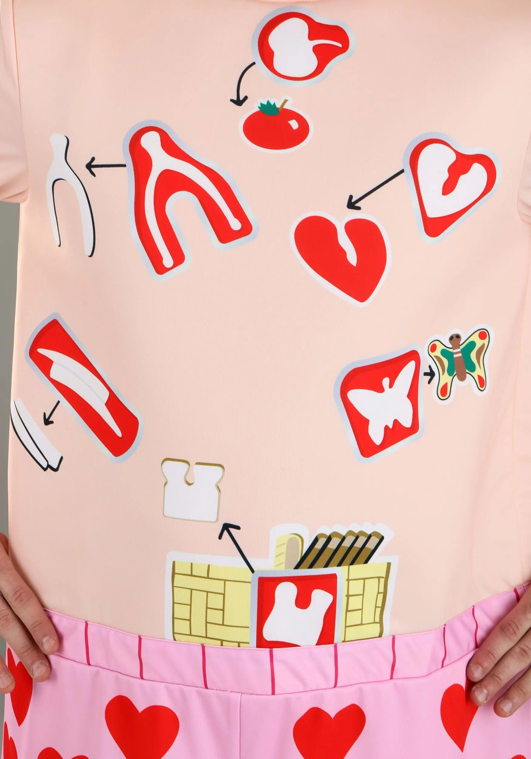 Our Made By Us design team proved they had the steadiest hands in the business while creating this inspired look based on the classic Hasbro game! This simple outfit is easy to wear, though looks anything but simple! Slip your legs into the jumpsuit and zip up the back. Show off each of the classic pieces, including the bread basket, writer’s cramp, and broken heart. An attached pair of heart boxers keep you modest while the oversized headpiece transforms your noggin into the iconic look of the Milton Bradley character, Cavity Sam. Mesh at the eyes allows for limited visibility but the fun of living out your classic game nostalgia is unlimited, now!