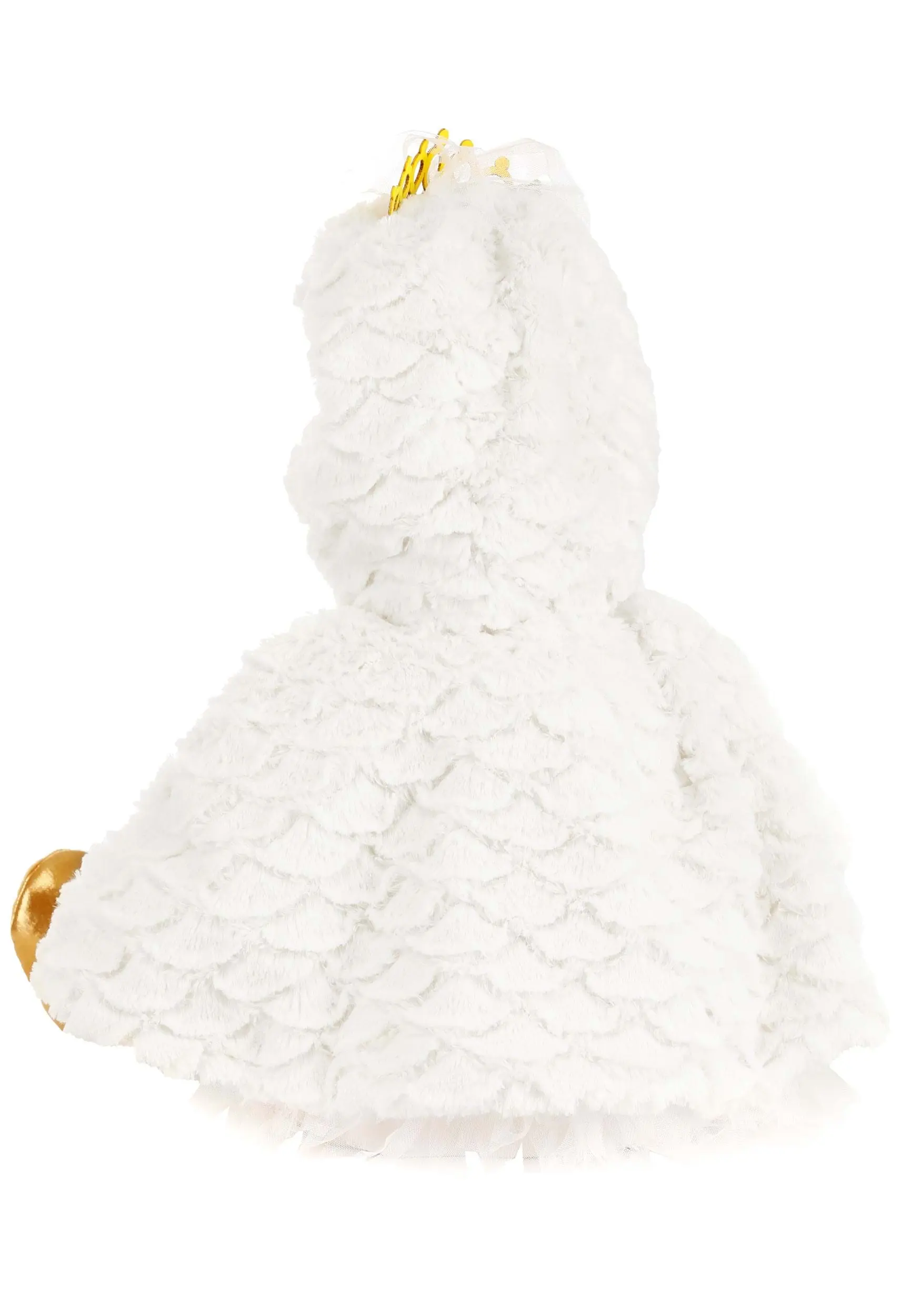 - Hood has soft-sculpted beak, embroidered eyes, glittery foam tiara on top