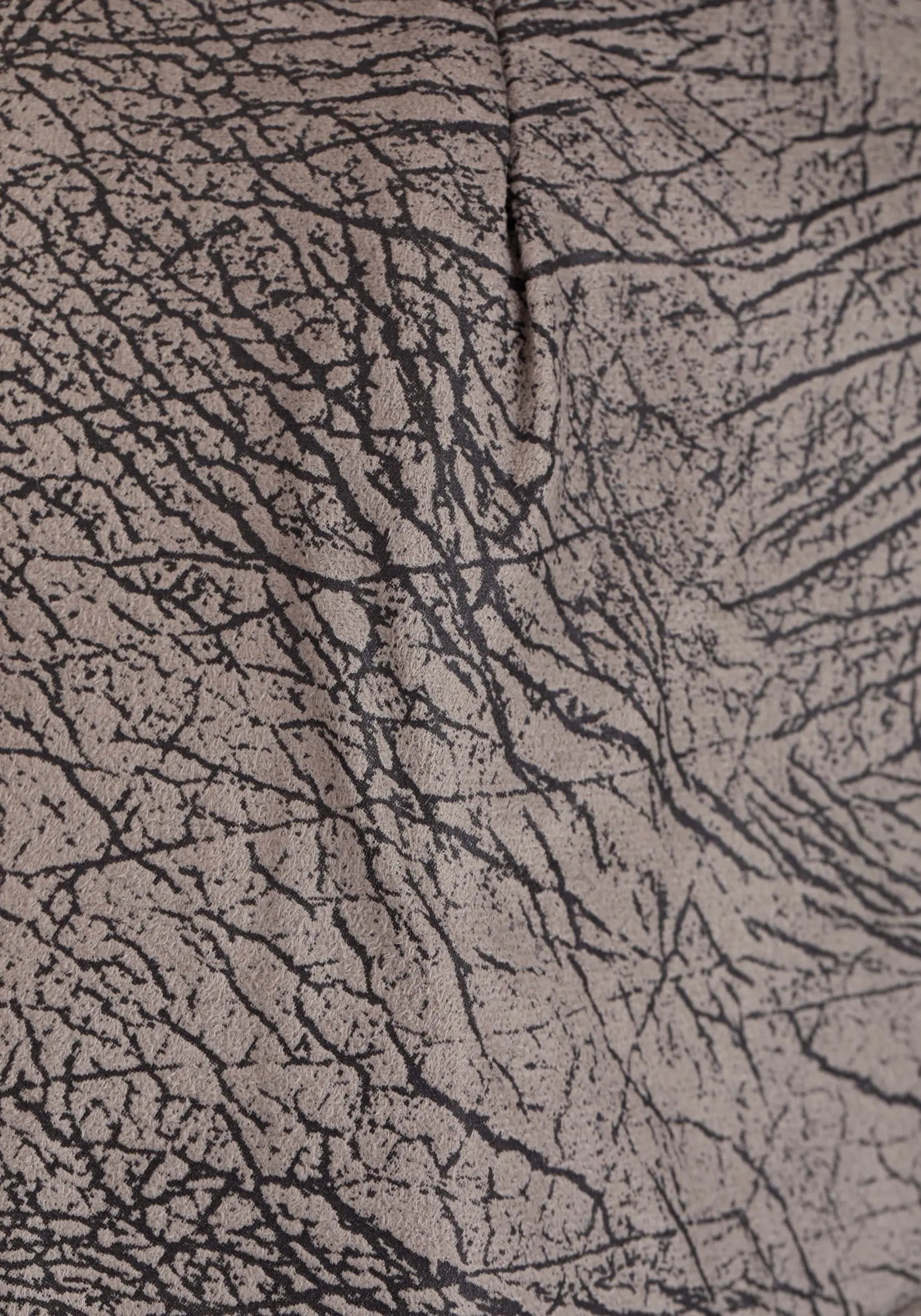 - Rhino hide print faux suede jumpsuit has off-center front hook & loop fastener strip from neckline to left waistline