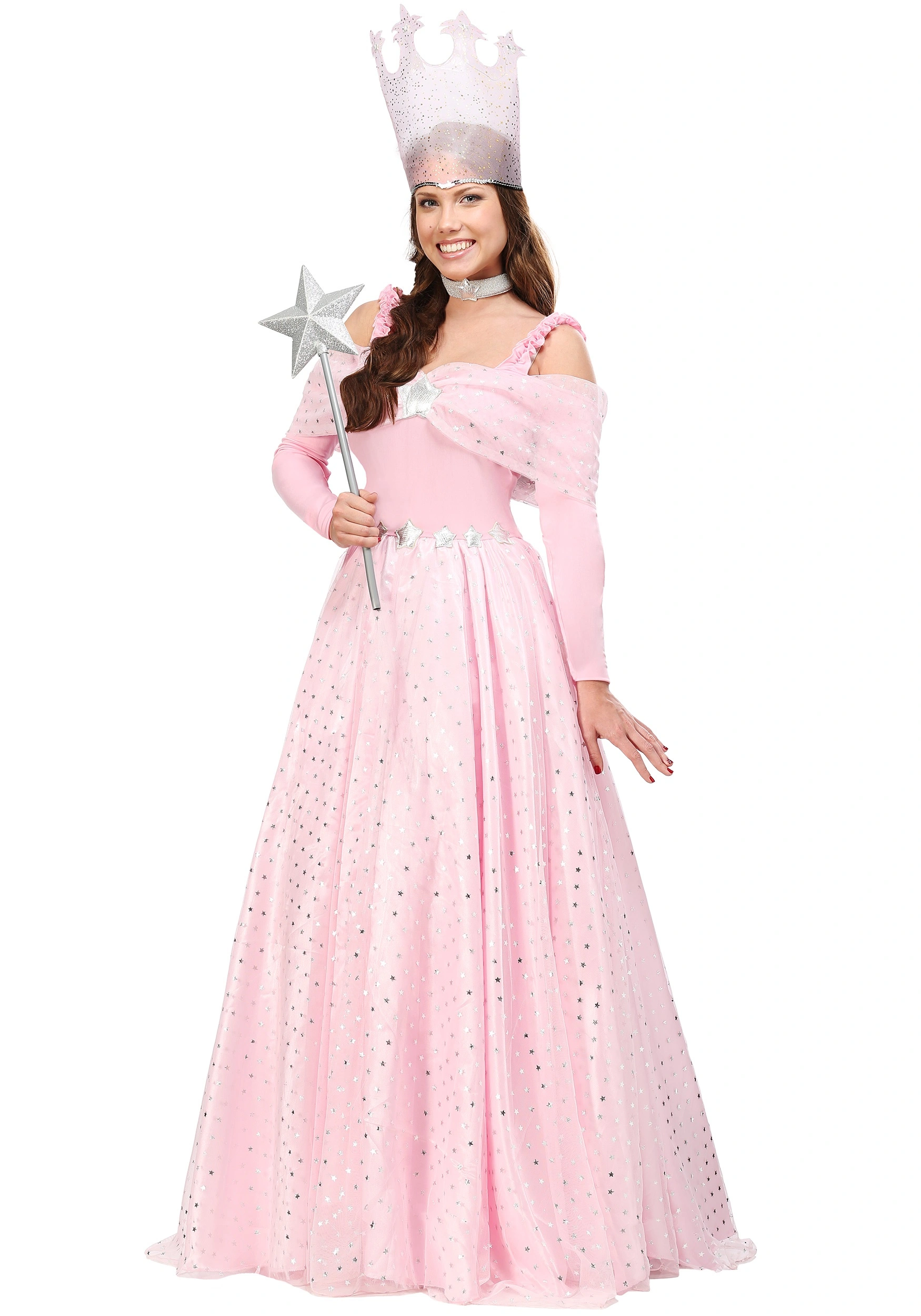 We’re not assuming this pink witch would float around in a bubble, it just seems like something she’d do. Can you imagine riding a broomstick in this gorgeous gown? It wouldn’t be easy and it wouldn’t be graceful. She would need some kind of mystical way to show up in the Knick of time with words of wisdom and restrained magical spells that erupt from her starry wand with a bubbly burst and the smell of lavender. With all the stars speckling her ensemble she might also ride shooting stars or transport herself via fluffy clouds. Maybe you’ll find out when you don this gorgeous gown!