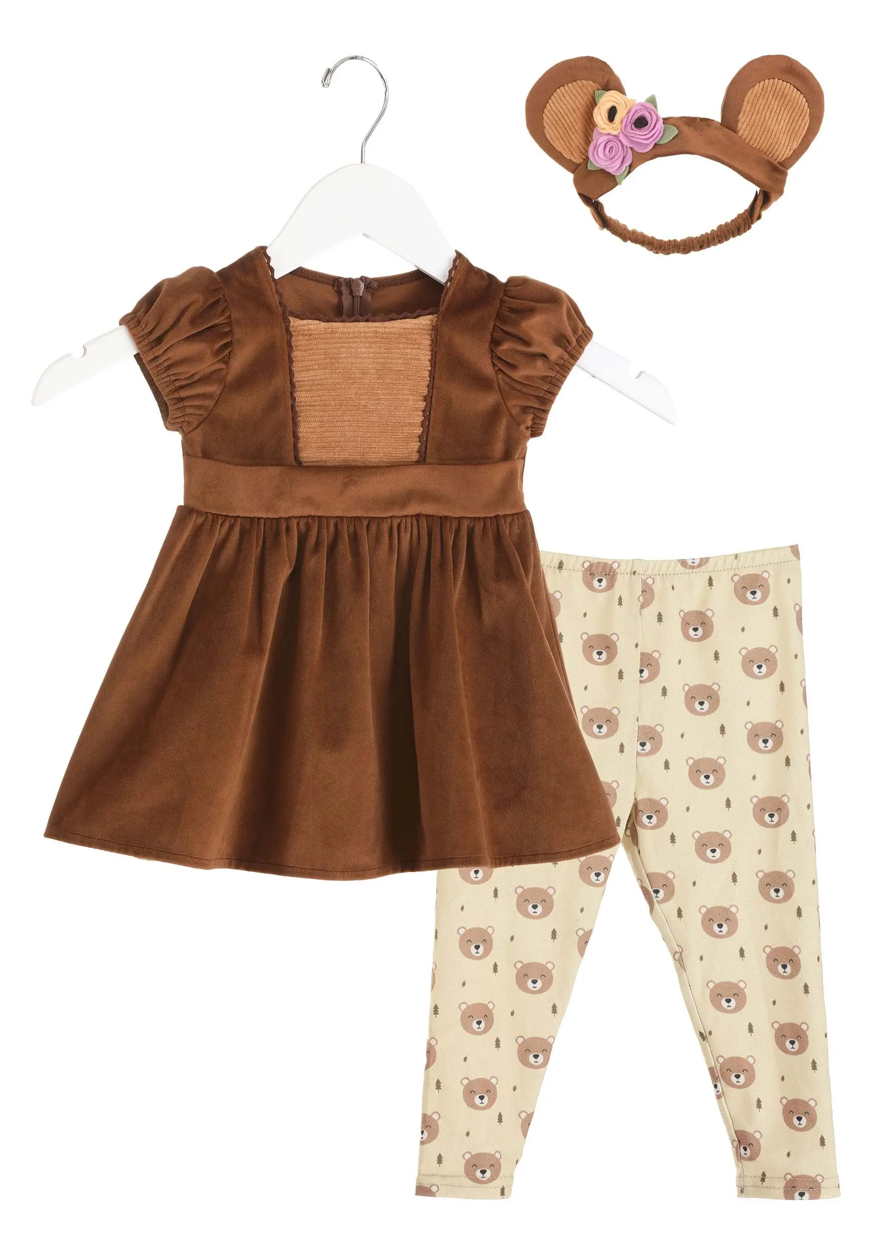 - 100% polyester dress and headband, 95% polyester 5% spandex leggings